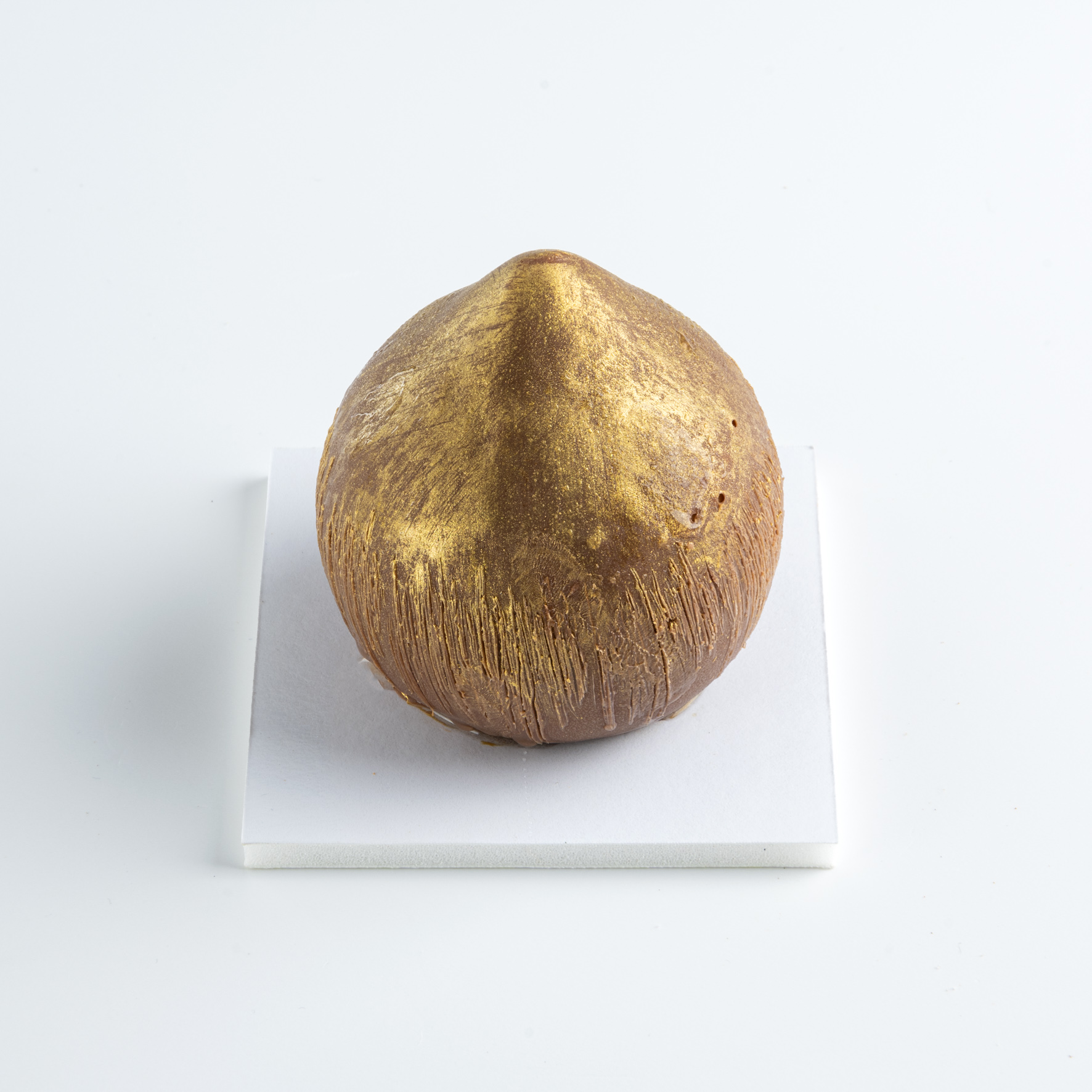 ganache montée à la noisette, dacquoise noisette et feuilletine, caramel onctueux à la fleur de sel, praliné noisette et coque chocolat lait